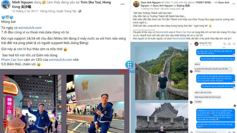 Nhiều khách hàng đã chia sẻ trải nghiệm tích cực sau khi sử dụng eSIM du lịch Trung Quốc từ eSIMdulich.com: