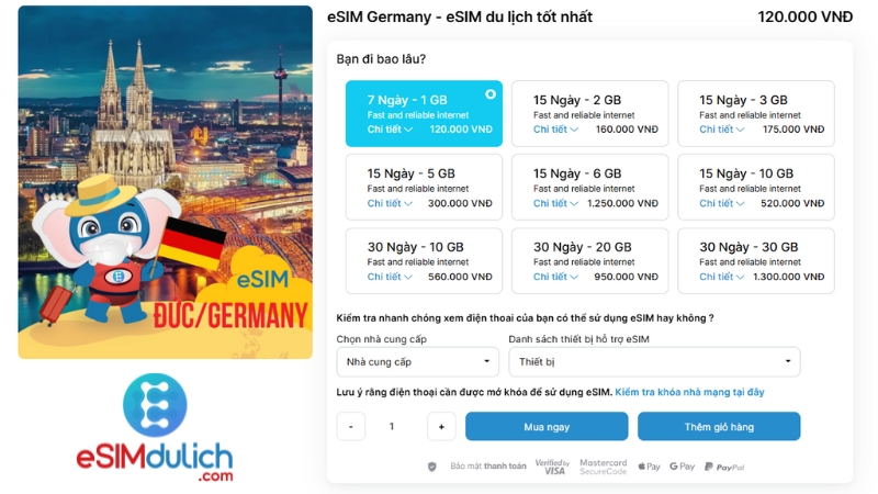 eSIM du lịch Đức giá rẻ chỉ từ 120.000 VNĐ - Gói cước từ 1-30GB linh hoạt
